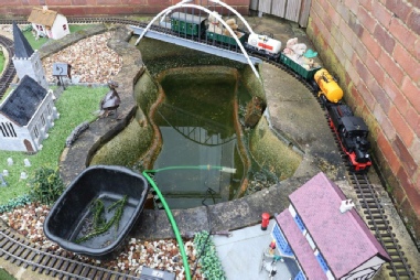 The track has now been diverted to allow for work to be done on the pond area.