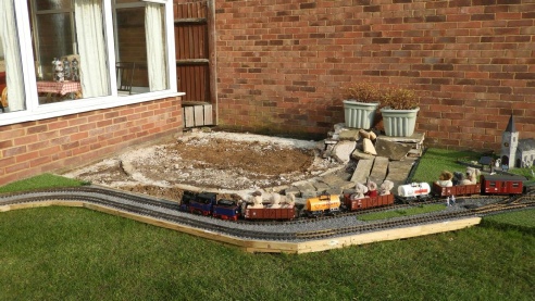 Preparations now begin so that a deck can be installed in front of the conservatory.