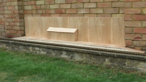 A half relief simple station was made from plywood and painted to look like brick. This was placed on a plywood base and backing board which became platform and backdrop scenery.