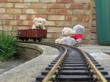 The first task, in early 2013, was to check and upgrade the existing trackbed. Using some fixed curves and a collection of flexible track, the first section was installed. The Bears “oversaw the process”.