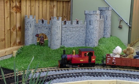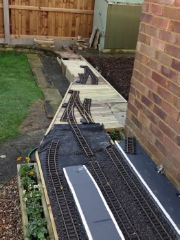 In May 2016, Phase 4 was just about complete. The stations had two lines through them and there were two tracks all the way round the garden, except across the edge of the patio.