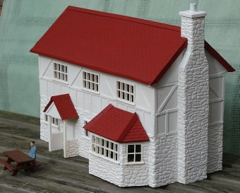 In the mean time, more model construction was taking place. Our own design for a pub was made up ready to paint and install.